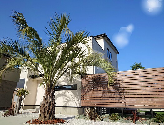 第31回全国施工写真コンテスト アイテム部門 入選作品詳細はこちら[施工のポイント]ヴィンテージウッドスリーパーラフトとペイプを色をランダムにつかい、遊び心を大切にしました。中心のココスヤシと白い自然石と青い空とのコントラストが良きと思います。