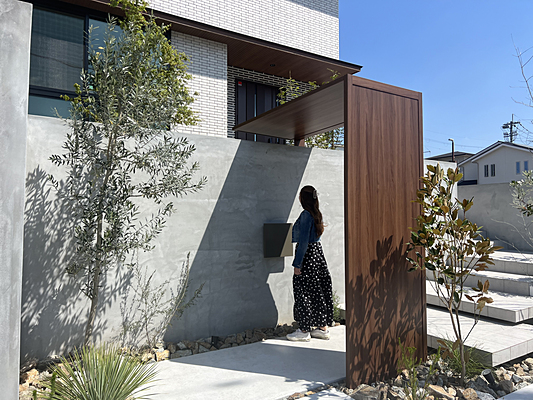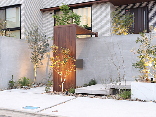 飾らない美しさを持つモルタルの魅力を最大限に演出致しました。どこかノスタルジックを感じさせる雰囲気に気品漂うエクティを採用しお洒落を表現致しました。お客様を出迎える素敵なファザード空間となりました。