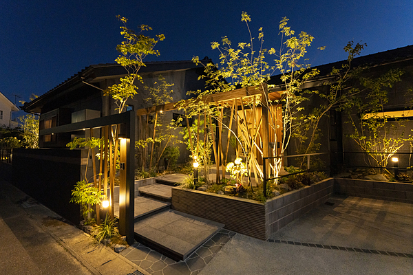 第31回全国施工写真コンテスト 特別賞 ニューマテリアルデザイン賞作品詳細はこちら[施工のポイント]マグストーンペイブで、跳ね出しの階段を廻りこむように作り、段数を増やすことで蹴上を低く施工し、サイズを混ぜて踏み面を広くすることで、歩きやすくデザイン性も高いアプローチになりました。