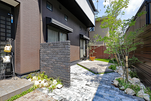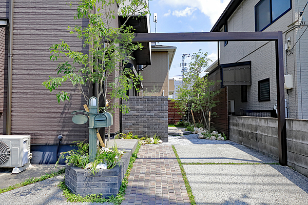 第31回全国施工写真コンテスト 特別賞 インスタラム賞作品詳細はこちら[施工のポイント]中庭に植えられて何年も経過し大きくなったカシの木と腐食し使えなくなった枕木を撤去し、新たな息吹を。隣地とのプライバシーには板塀を設け、既存のジュラストーン:乱張り石は残しつつ、コンクリート製枕木を再度据え付け、奥側が明るい印象となるように人工芝を敷き、手前にはビンテージレンガそして、お庭の目隠し、そしてリビングからのちょっとした目隠しをレンガ塀でデザイン。また門柱内に植えていたソヨゴも一部が枯れ、育ちも悪い状況でしたので新たにアオダモを植えさせて頂きました。