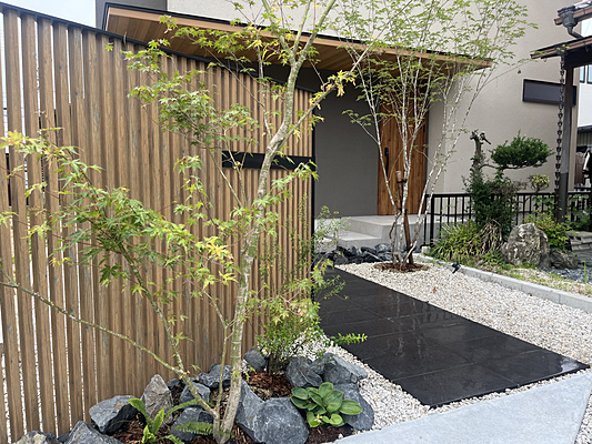 料亭の入り口をくぐるような趣を持ち、美しい植栽の中を潜り抜けるようにしました。
