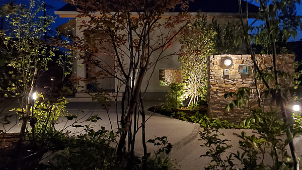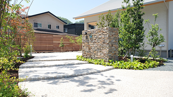 第31回全国施工写真コンテスト プレートマテリアル部門 優秀賞作品詳細はこちら[施工のポイント]【3世代が安全に楽しめるお庭】ご夫婦とお子様で暮らすお施主様に、お隣がご実家という環境でした。玄関から道路への動線を長く取り、お子さんが道路に飛び出ないようにアプローチを設けました。おじいちゃんおばあちゃんがお孫さんによく会いに来られる為、アプローチの蹴上を低く緩やかにして歩きやすいようにしています。また夜になっても、足元を明るく照らすポールライトを設置しております。3世代が仲良く安全に安心して集える空間となるといいなと想い、設計致しました。