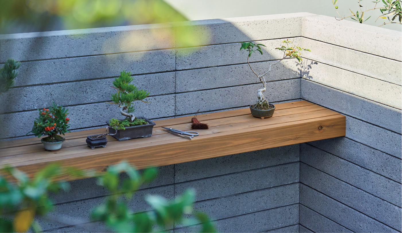 デッドスペースに棚をつけて、飾り付けたりプランタースペースとしても有効活用。